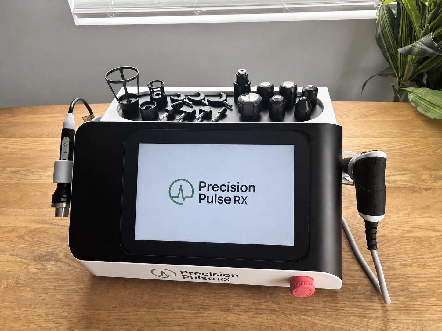 Pneumatic radial shockwave technology delivers high-energy acoustic pulses deep into tissue, triggering biological regeneration, breaking down calcifications, and rapidly reducing pain through neural modulation.