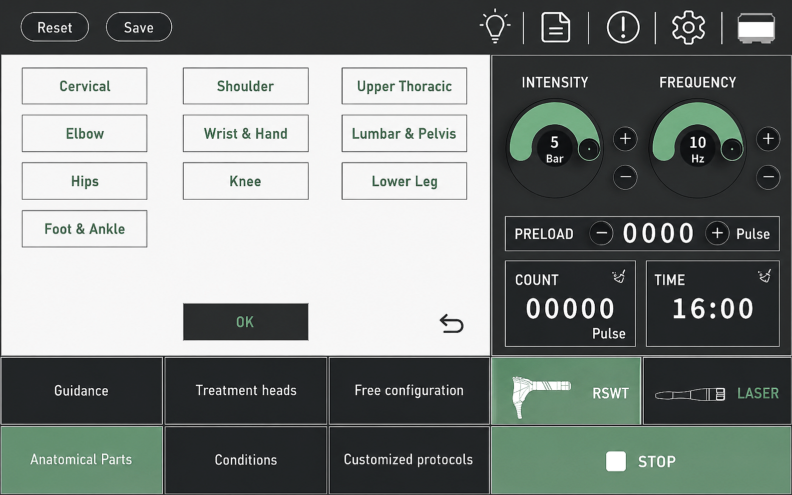 Independently controlled radial shockwave and Class IV laser — each optimized for distinct therapeutic goals, engineered to work in synergy for superior outcomes.